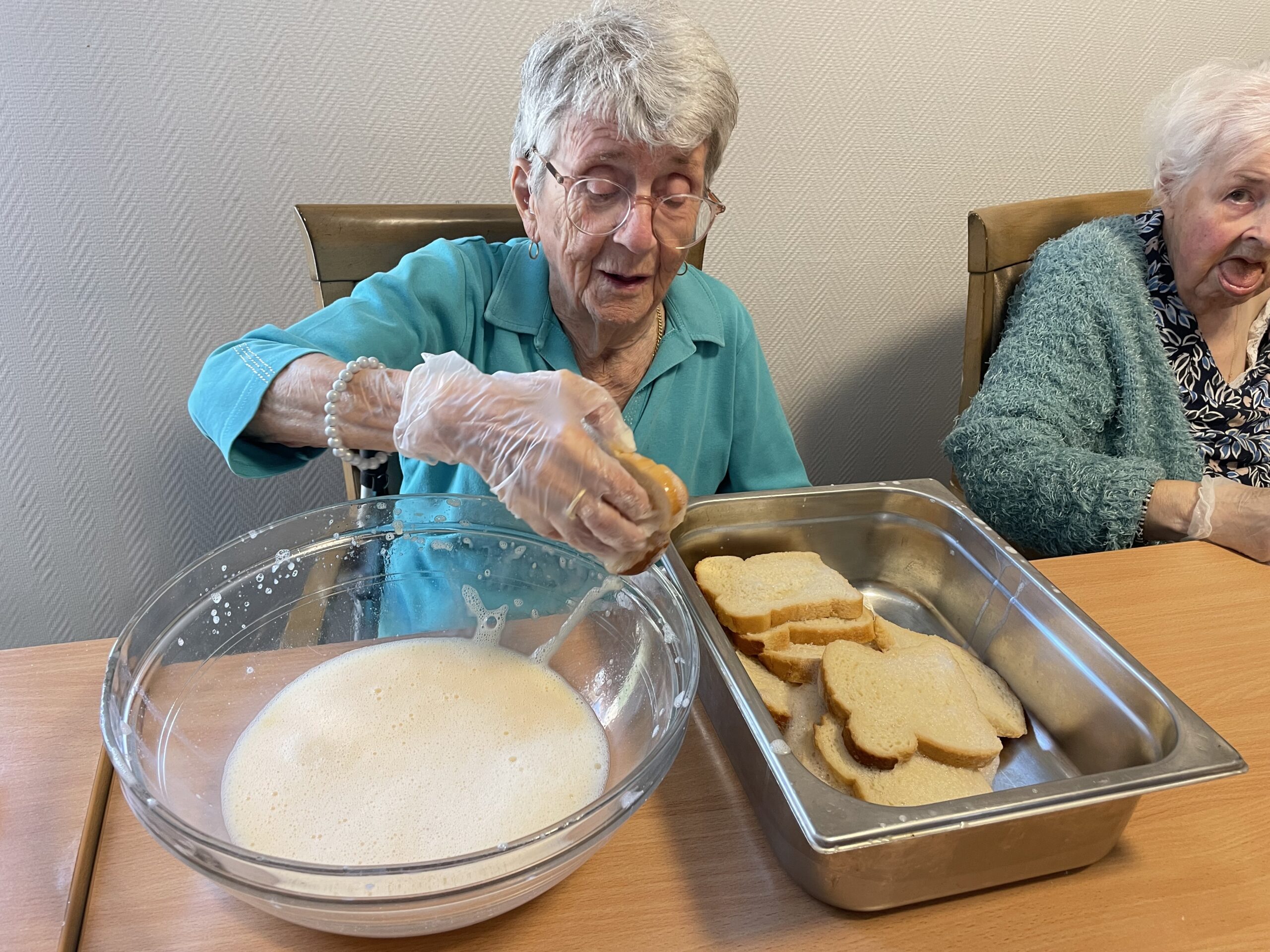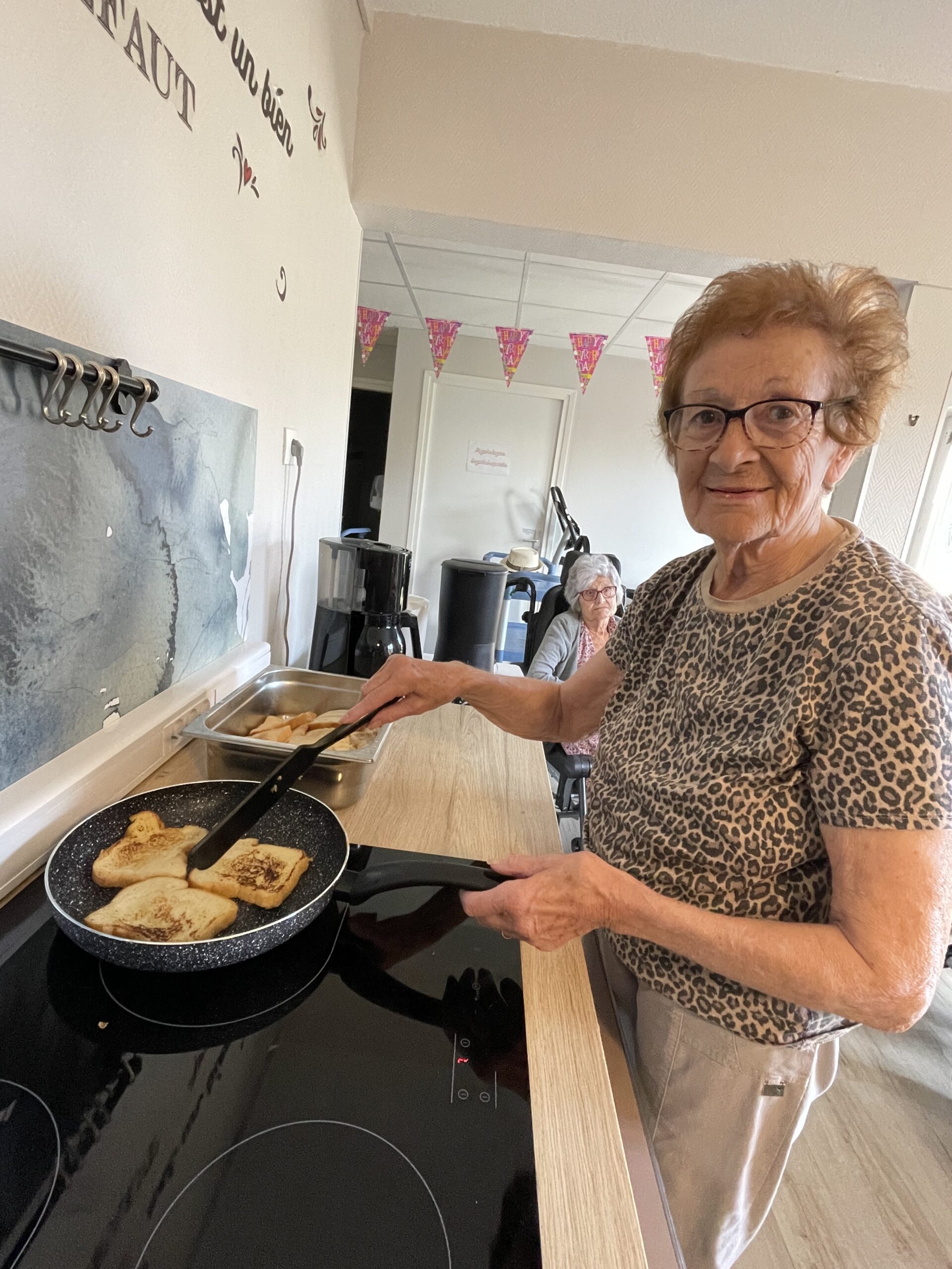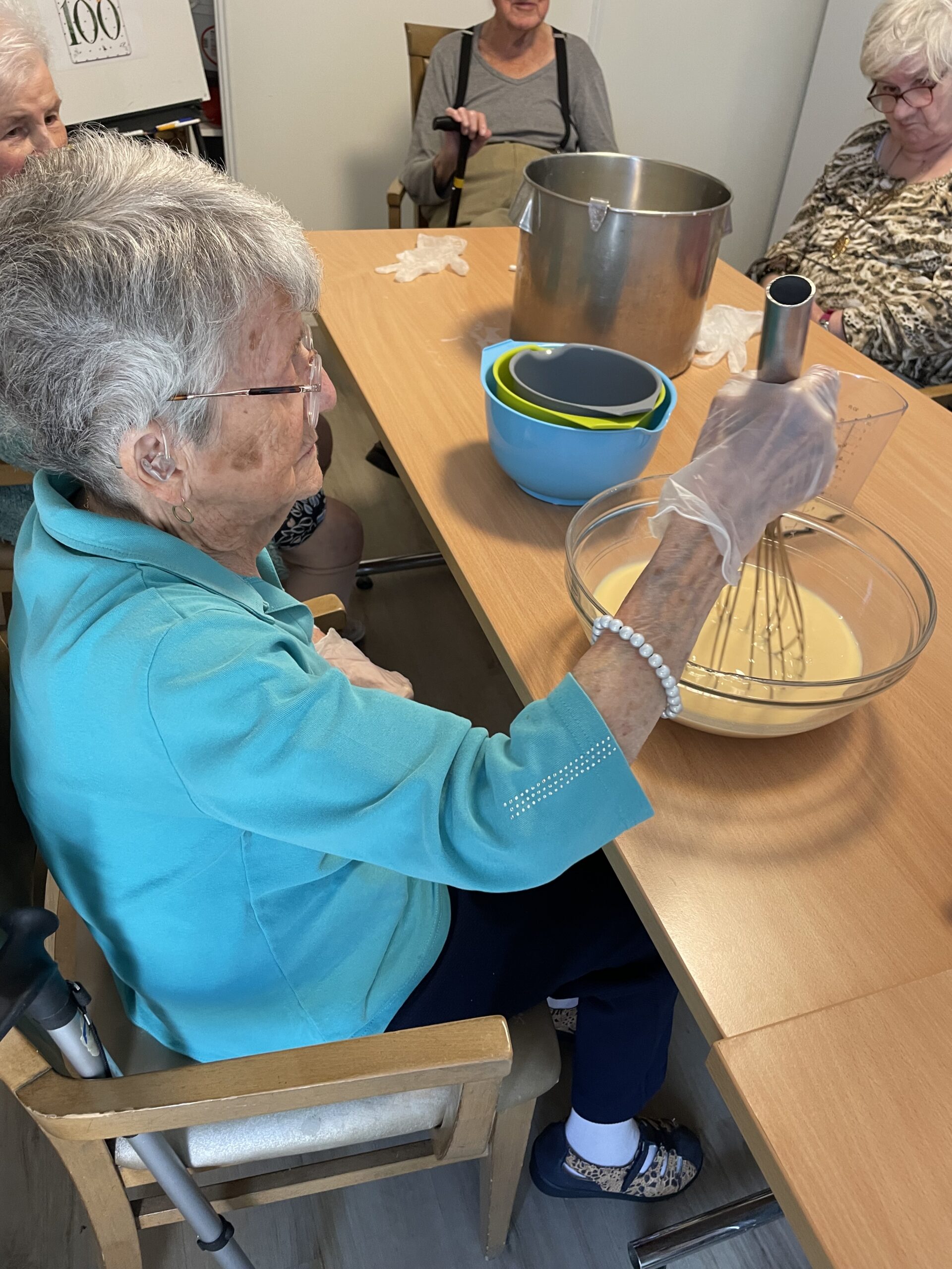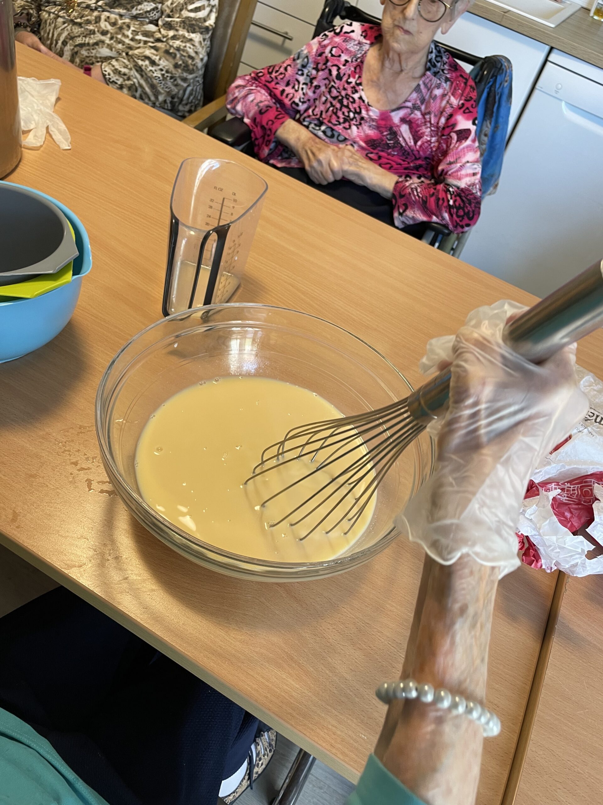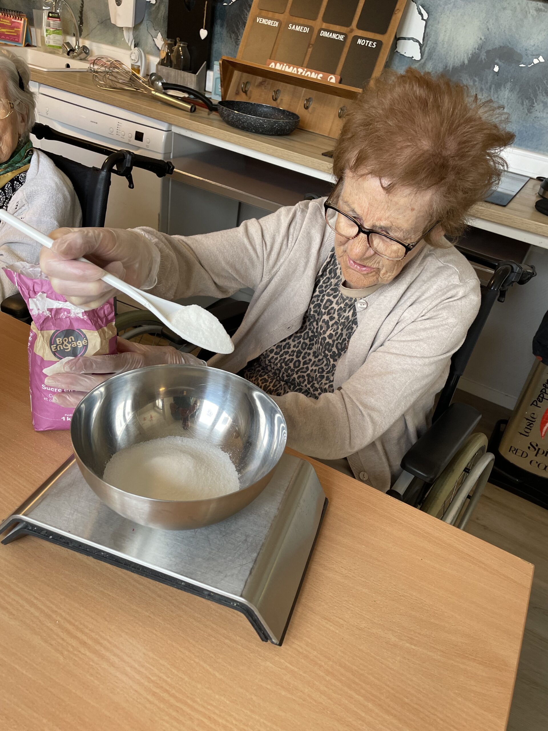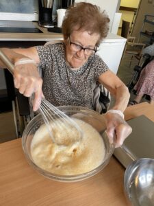 Ces ateliers ont également pour vocation de valoriser les compétences des résidents. Chacun peut contribuer, selon ses envies et ses possibilités : lire ou dicter les étapes d’une recette, verser des ingrédients, remuer une préparation, ou simplement participer à la discussion.