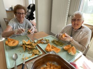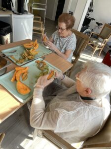 À travers des gestes simples comme éplucher, mélanger, ou suivre une recette, les résidents retrouvent des repères familiers, activent leur motricité fine, sollicitent leur mémoire et ravivent des souvenirs souvent liés à la cuisine de leur enfance ou à des moments de vie en famille.