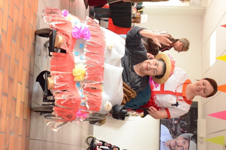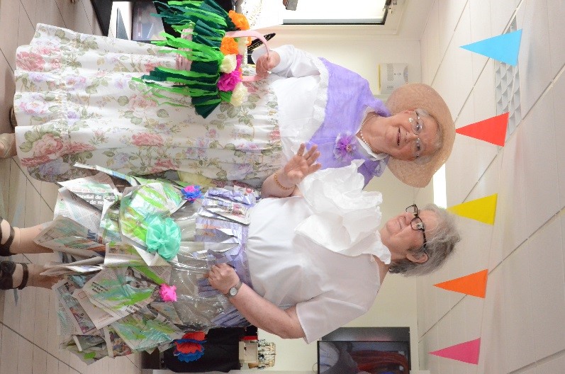 Après l’imagination, nous avons laissé place à la création. Nos ateliers défil’ECO ont pris une nouvelle direction, des petites mains se sont réunies afin de mettre de la couleur dans les tenues des résidents : fleurs en papier crépon, franges en journaux, robes en nappe en plastique…