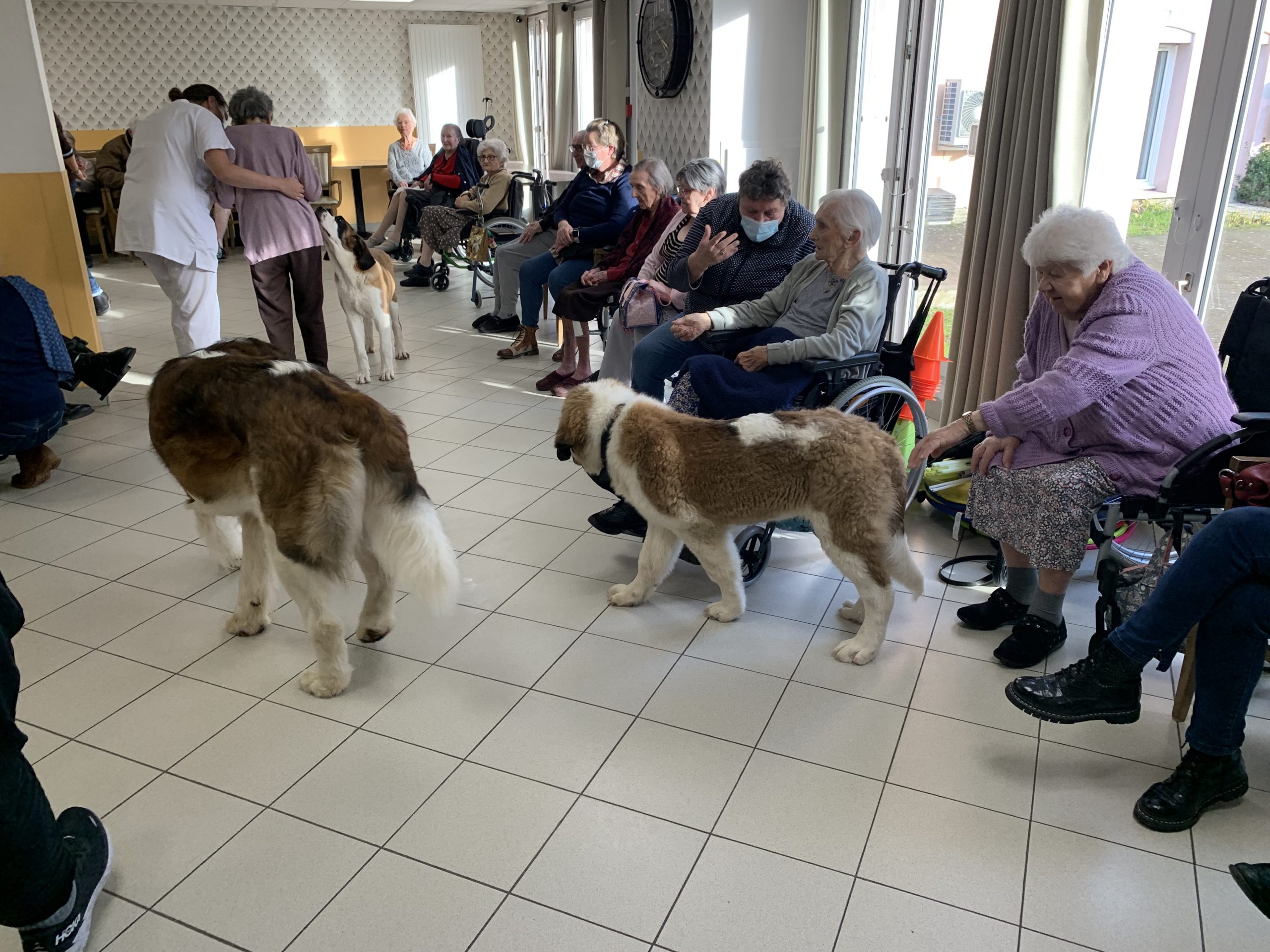 L’Association Escapatte est venue nous rendre une petite visite avec ses adhérents à quatre pattes. Caresses, câlins et partage ont marqué cet après-midi pour le plaisir de tous.